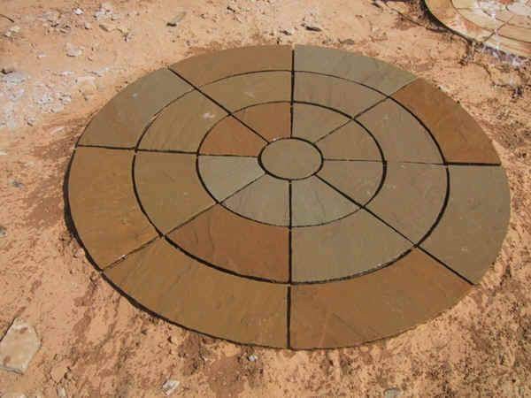 Sandstone circles create a lovely feature in paving, adding subtle movement to a design or transforming a drab corner. Paving circles, available in different sizes in colours,Autumn Brown, Mint, Kandla Grey and Raj Green, yellow , modak and many more with our Indian sandstone range If you want a garden feature quite unlike any other, Natural Sandstone is the solution.